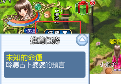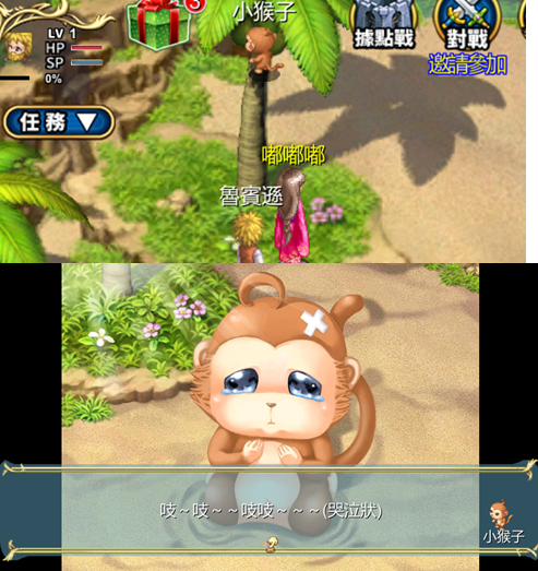 玩家上岸後會遇到一隻【小猴子】,過去跟牠接觸之後,牠會加入隊伍成為您初期的伙伴。