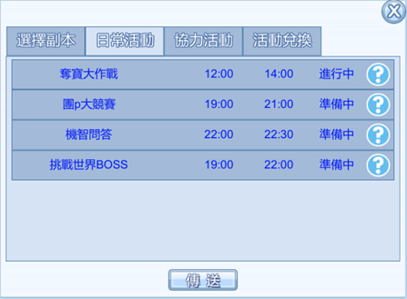 在遊戲界面右上角點擊【活動】,可以選擇進行日常活動、副本。